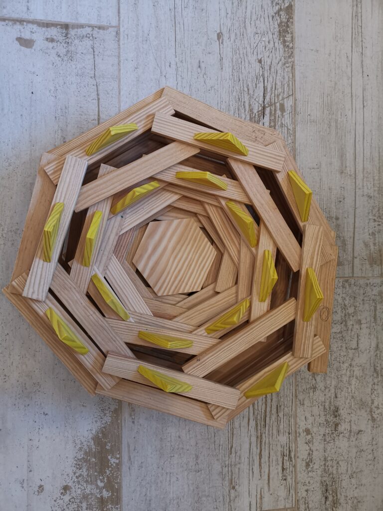 Un día decidí hacer una media cúpula gigante y la decoré con piezas de colores y jugaba a que eso era un estadio y la hice a los 9 años.