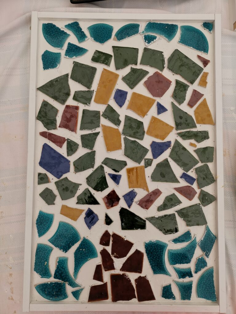Estos mosaicos los hice con mis amigas Adriana y Carolina juntos, en el primer mosaico nos inspiramos en la antigua bandera de Japón y en el segundo en un árbol. nos costo mucho hacerlo pero nos lo pasamos genial. aquí tenéis una foto de los dos.